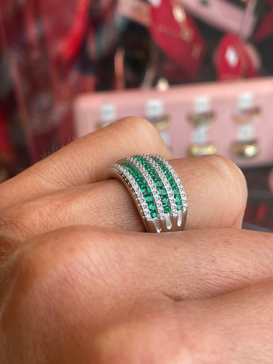 Silver CZ Crossover Band Ring | Emerald Green