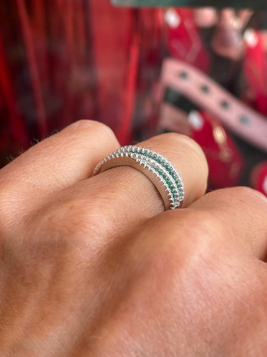 Silver CZ Wide Band Ring | Emerald Green