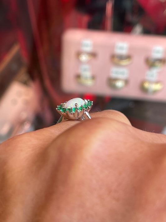 Silver Oval Diana Cluster Ring | Opalique & Emerald Green