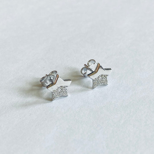 Silver CZ Lightning Star Stud Earrings