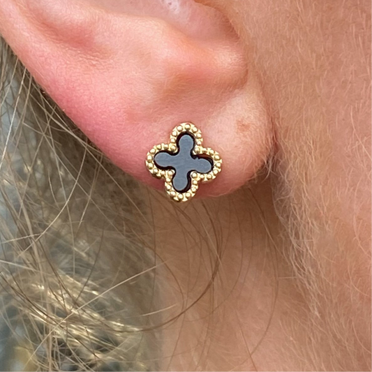 9ct Gold Onyx Quatrefoil Stud Earrings