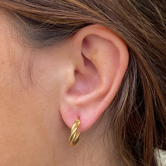 9ct Gold Braided Twist Hoop Earrings | 10mm