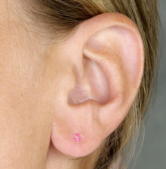 Silver Pink Enamel Flower Stud Earrings