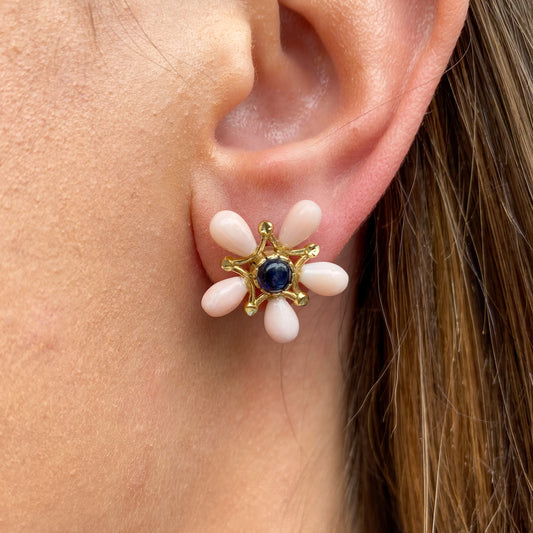 18ct Gold Rose Coral & Sapphire Statement Stud Earrings | 18mm