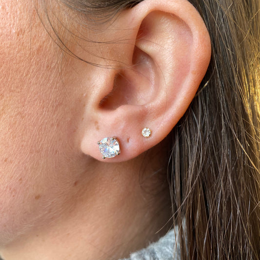 Silver 8mm Round CZ Claw Set Stud Earrings