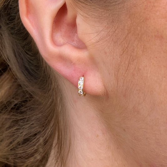9ct Gold 11mm Huggie Hoop Earrings | White CZ