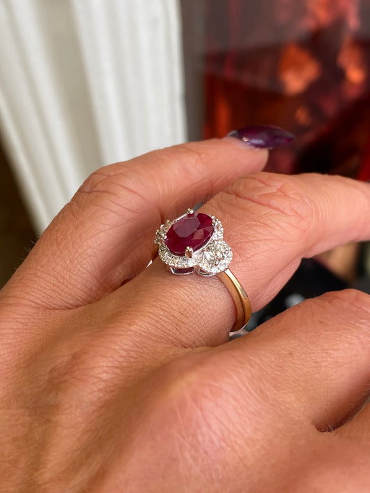18ct Gold Ruby & Diamond Diana Cluster Ring