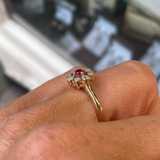 14ct Gold Ruby & Diamond Cluster Ring