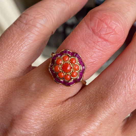 9ct Gold Coral & Ruby Ring