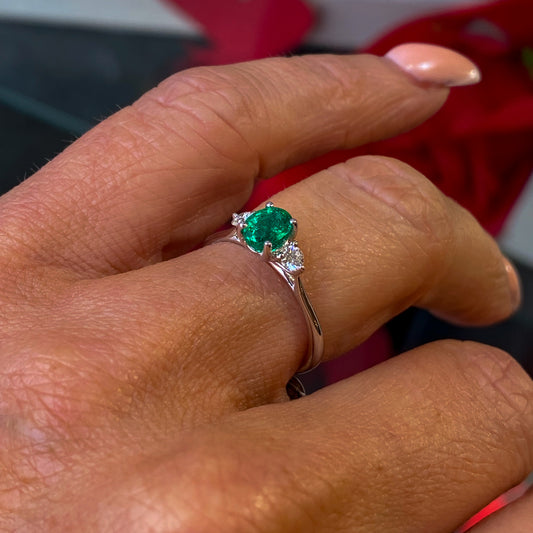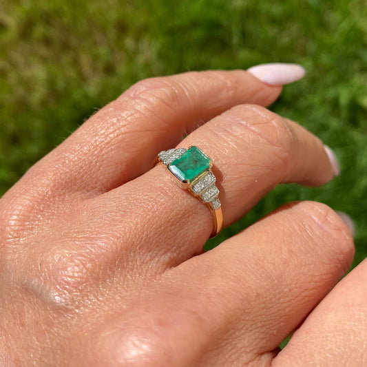18ct Gold Emerald & Diamond Engagement Ring | 0.40ct + 0.38ct