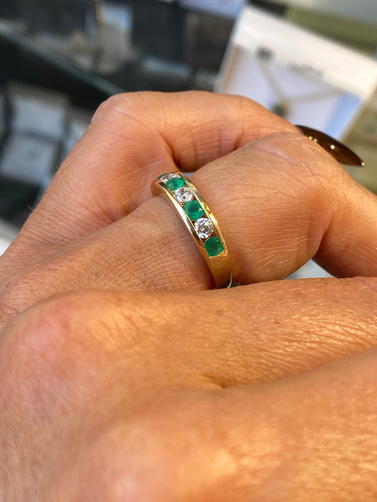 18ct Gold Emerald & Diamond Garland Ring