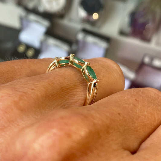 9ct Gold Marquis Trilogy Ring | Emerald
