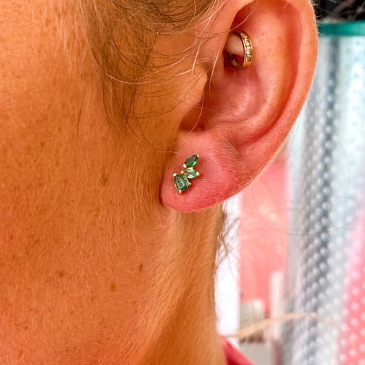 18ct Gold Marquise Emerald Climber Stud Earrings
