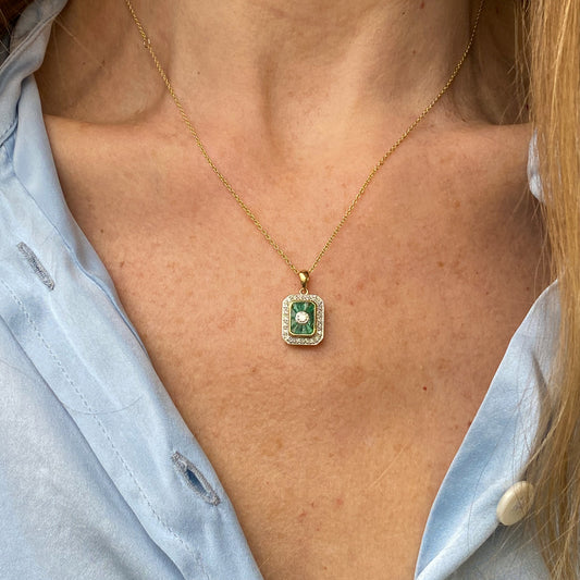 9ct Gold Emerald & Diamond Necklace