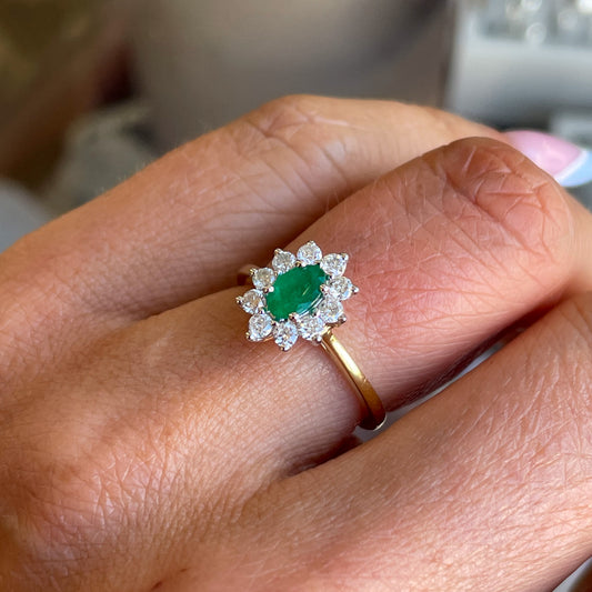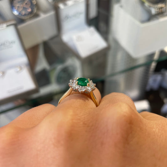 18ct Gold Emerald & Diamond Cluster Ring
