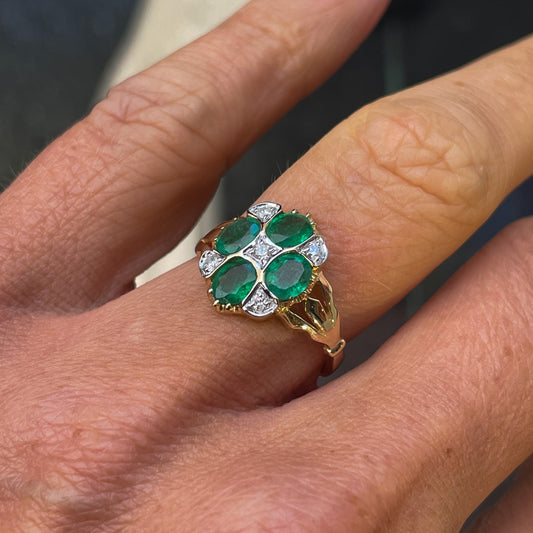9ct Gold Emerald & Diamond Quattro Ring