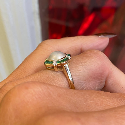 9ct Gold Pearl, Emerald & Diamond Ring