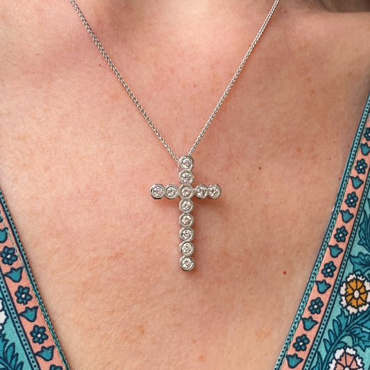 18ct White Gold 1ct Diamond Apostle's Cross Necklace