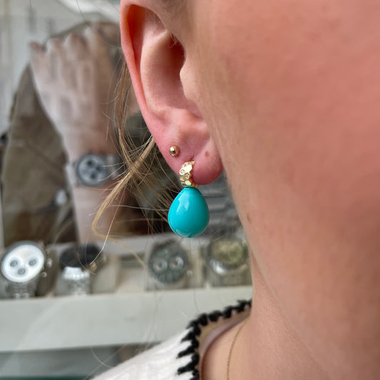 Sunshine 12x15mm Turquiose Shell Pearl & CZ Drop Earrings