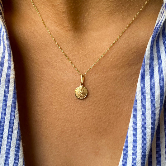 9ct Gold St Christopher Medal Pendant & Chain | Small