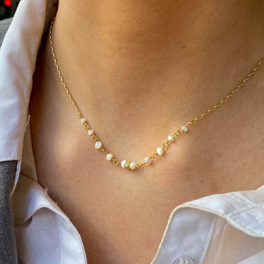 Sunshine Mother Of Pearl & CZ Paperlink Necklace