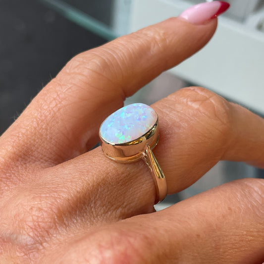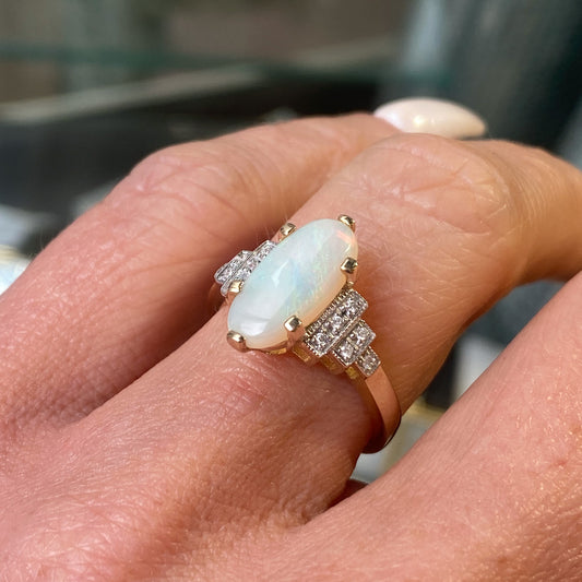 Sold out9ct Yellow Gold Opal & Diamond Ring