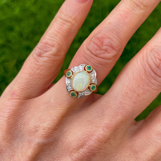 9ct Yellow Gold Gem Opal, Emerald & Diamond Ring
