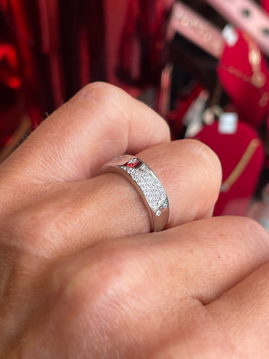 Silver Star Studded CZ Band Ring