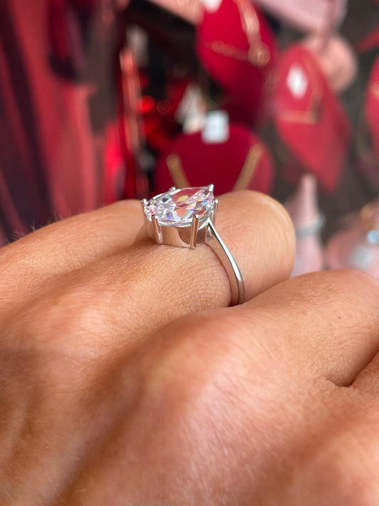 Silver Pear CZ Solitaire Ring