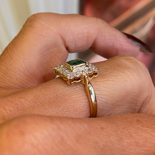 9ct Gold Green Tourmaline & Diamond Quattro Ring