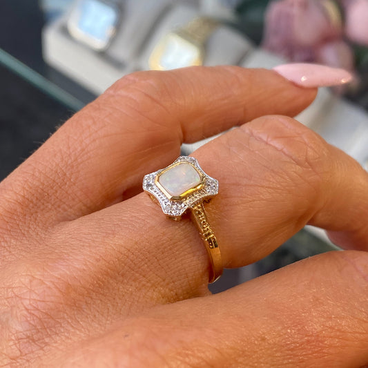 9ct Yellow Gold Gem Opal & Diamond Ring