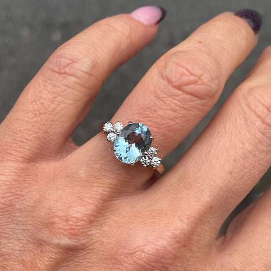 9ct Gold Blue Topaz & CZ Vintage Style Ring