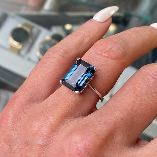 9ct White Gold Octagon Cut London Blue Topaz Ring