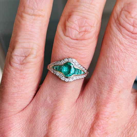 9ct Gold Emerald & Diamond Saddle Ring