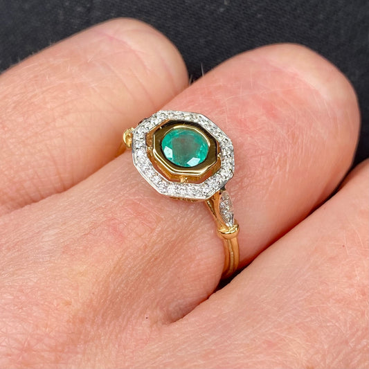 9ct Gold Emerald & Diamond Ring