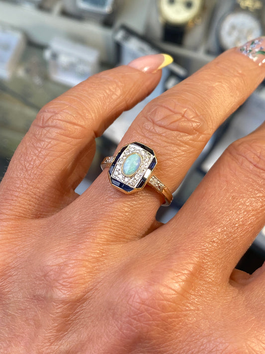 9ct Gold Gem Opal, Sapphire & Diamond Ring