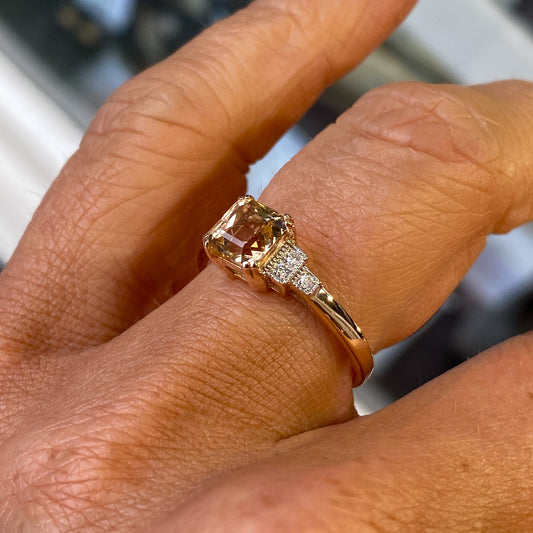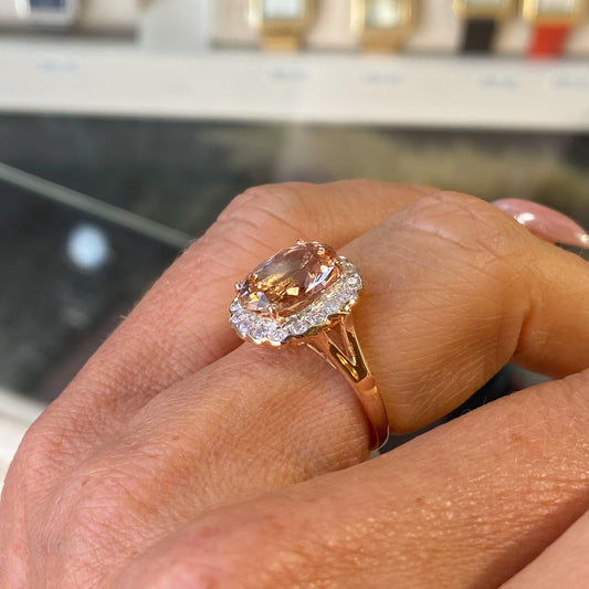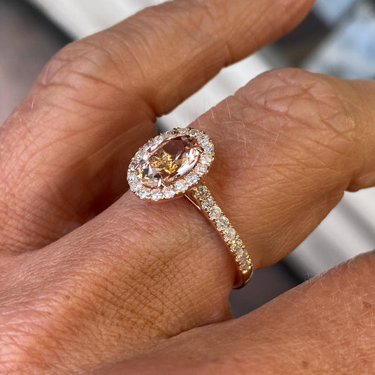 9ct Rose Gold Oval Morganite & Diamond Ring | 1.17ct