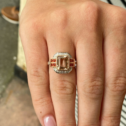 9ct Rose Gold Morganite, Orange Sapphire & Diamond Ring