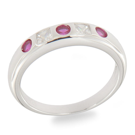 Silver Red CZ Band Ring