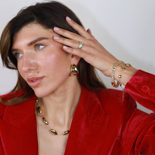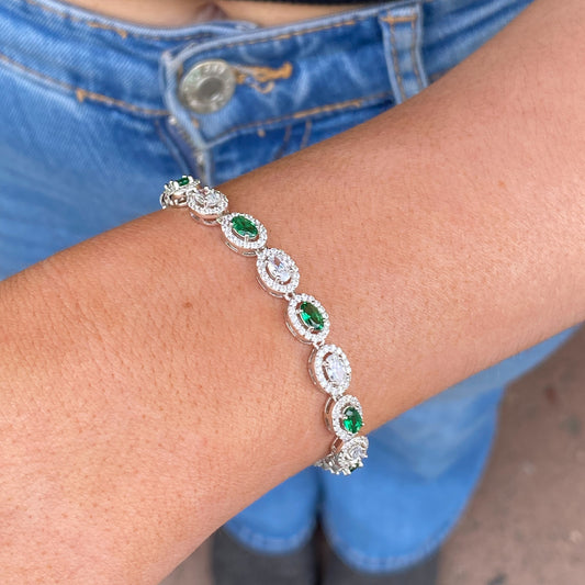 Silver Oval Halos CZ Line Bracelet | Emerald Green