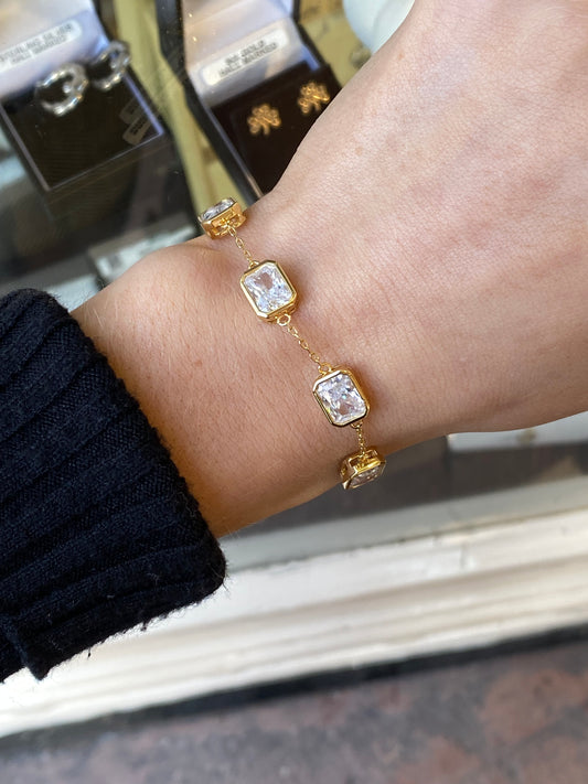 Silver Emerald Cut CZ Tennis Bracelet | 17+3cm