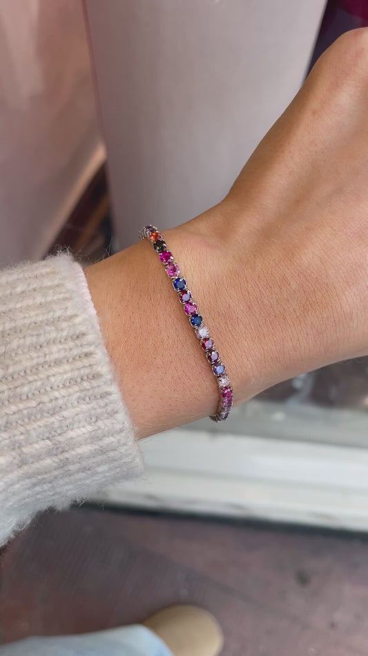 Silver Multicolour 3mm CZ Tennis Bracelet | 16+3cm