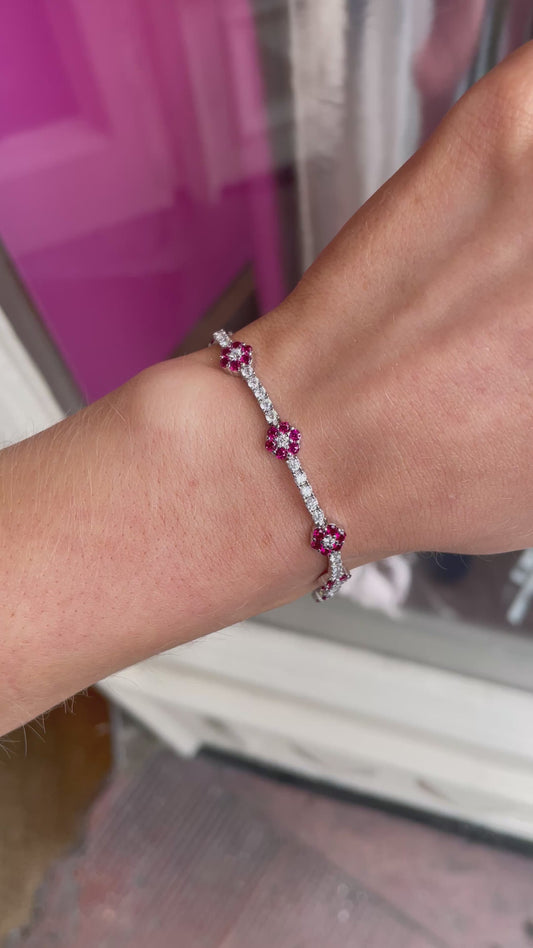 Silver Ruby Red 2mm CZ Tennis Bracelet | 20cm