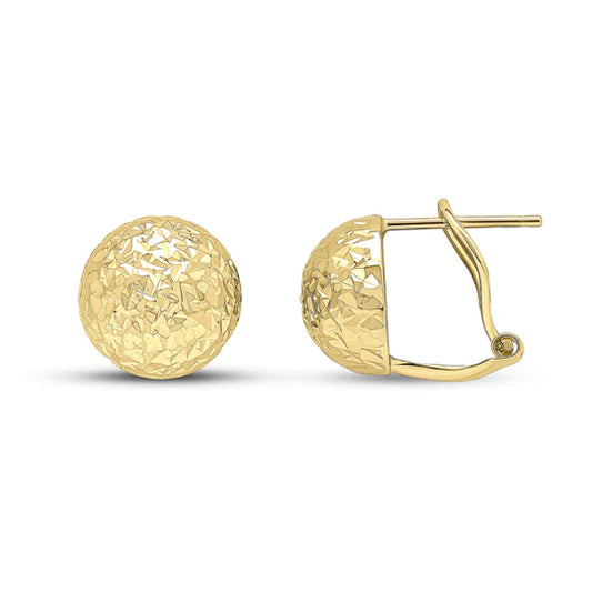 9ct Gold Puffed Diamond Cut Round Stud & Clip Earrings