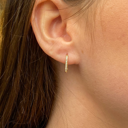 9ct Gold Rectangular CZ Huggie Hoop Earrings | 15mm