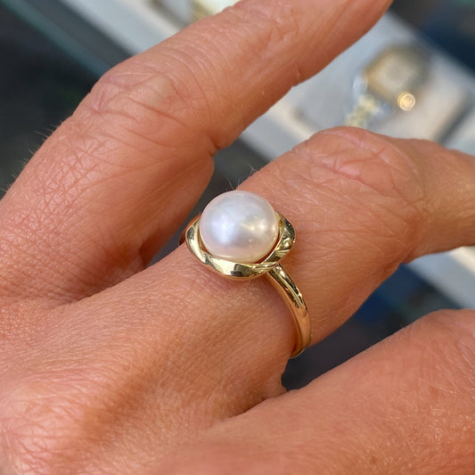 9ct Gold Bouton Pearl Ring