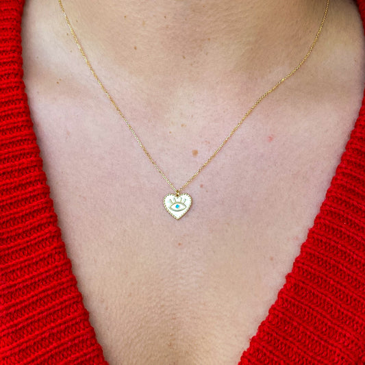 9ct Gold Evil Eye Heart Disc Necklace