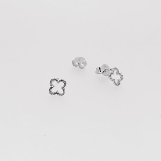 9ct White Gold Open Quatrefoil Diamond Stud Earrings | 0.10ct