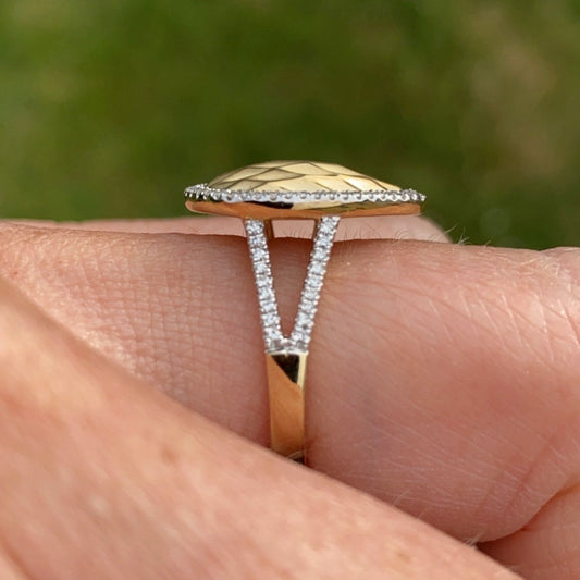 9ct Yellow Gold Waffle & Diamond Ring