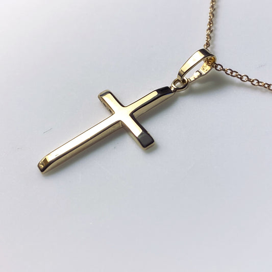 9ct Yellow Gold Solid Cross Necklace - Medium